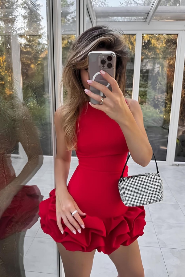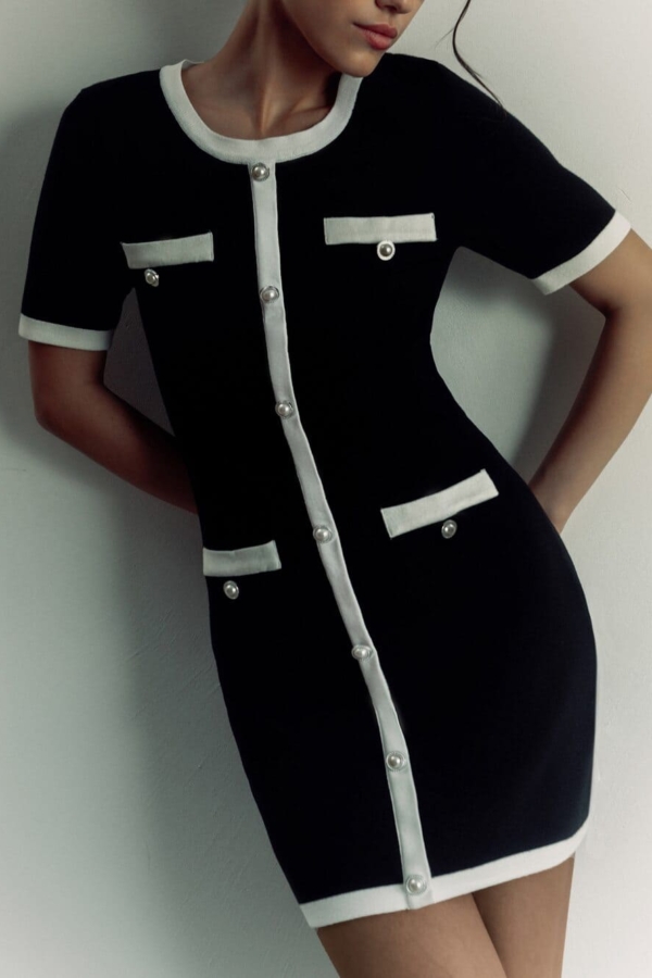 Vestido Curto Azul com Brilho e Estampa de Borboletas