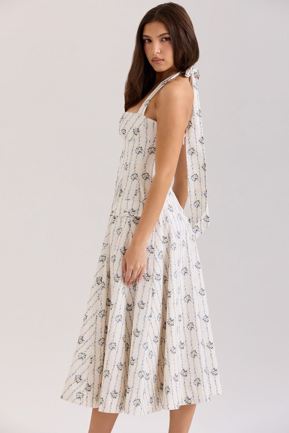 Desperte sua feminilidade mais autêntica com nosso deslumbrante vestido camponesa vintage floral estampado que combina design vintage, alças amarráveis e saia midi evasê para criar uma silhueta envolvente e romântica.